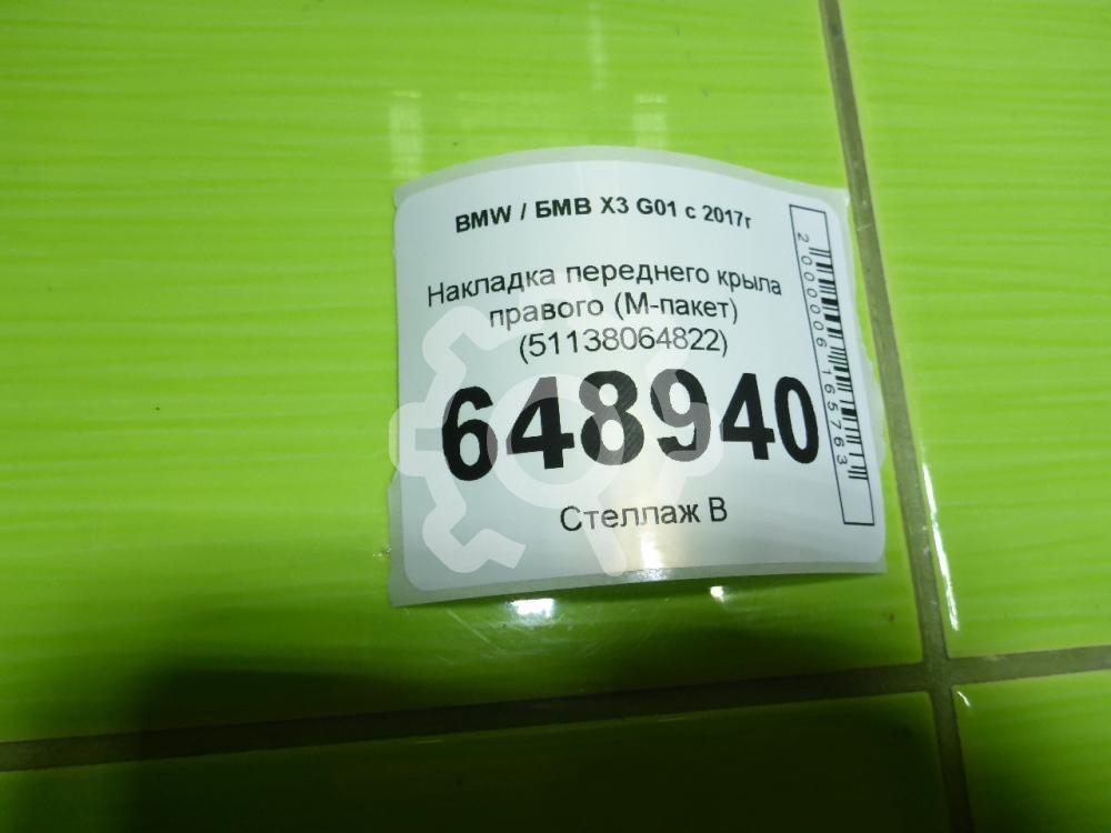 Накладка переднего крыла правого (M-пакет) (51138064822) | Обратите внимание: деталь находится на удаленном складе на Урале, срок доставки до СПб 3-5 дней. Отправка осуществляется только после 100% предоплаты. Доставка до ТК: ПЭК, КИТ (GTD), Энергия - 500 руб., СДЭК - бесплатно (забор груза с нашего склада по договору). Другие транспортные компании - забор груза со склада по цене ТК. Стоимость услуг по доставке оплачивается покупателем при получении детали по тарифу ТК. Царапины,